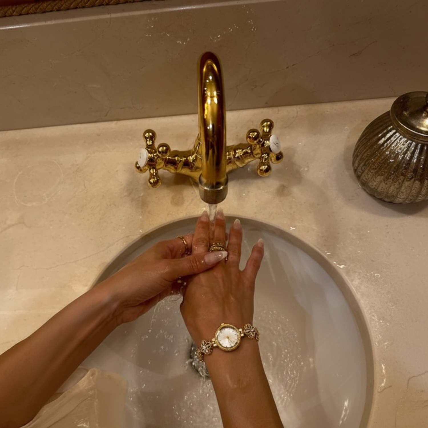 Chez ARĀ, chaque montre est sélectionnée avec exigence. La montre Léna est fabriquée à partir d’une combinaison d’acier inoxydable et d’alliage plaqué or, avec un revêtement protecteur conçu pour limiter la décoloration et préserver l’éclat dans le temps.