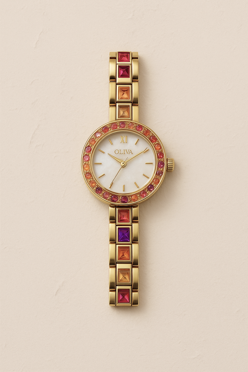 Cette élégante montre allie un design intemporel à une durabilité moderne. Conçue pour s'adapter au poignet féminin, elle est dotée d'un cadran de 30 mm. La montre Oliya | Gold offre un mélange parfait de style et de confort.